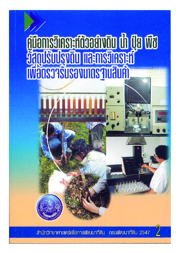 คู่มือการวิเคราะห์ตัวอย่างดิน น้ำ ปุ๋ย พืช วัสดุปรับปรุงดินและการวิเคราะห์เพื่อตรวจรับรองมาตรฐานสินค้า เล่ม 2