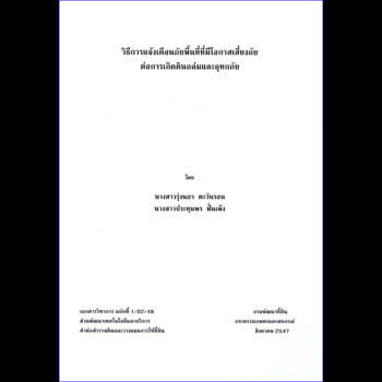 | ชื่อเรื่อง : วิธีการแจ้งเตือนภัยพื้นที่ที่มีโอกาสเสี่ยงภัยต่อการเกิดดินถล่มและอุทกภัย |