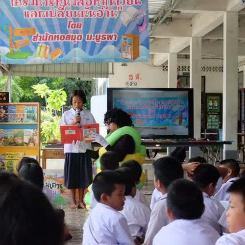 | คำอธิบาย : สำนักหอสมุด มหาวิทยาลัยบูรพา จัดโครงการ “หนังสือหมุนเวียนแลกเปลี่ยนกันอ่าน” ครั้งที่ 2/2561 ณ โรงเรียนบ้านเนินหลังเต่า อ.พนัสนิคม จ.ชลบุรี เมื่อวันที่ 12 มิถุนายน พ.ศ. 2561 โดยได้จัดกิจกรรมส่งเสริมการอ่านและนำหนังสือ จำนวน 200 เล่ม มอบให้ทางโรงเรียนไว้สำหรับให้ยืมอ่าน เป็นระยะเวลา 3 เดือน เพื่อเป็นการส่งเสริมให้เด็กมีนิสัยรักการอ่านและใช้เวลาว่างให้เป็นประโยชน์ |