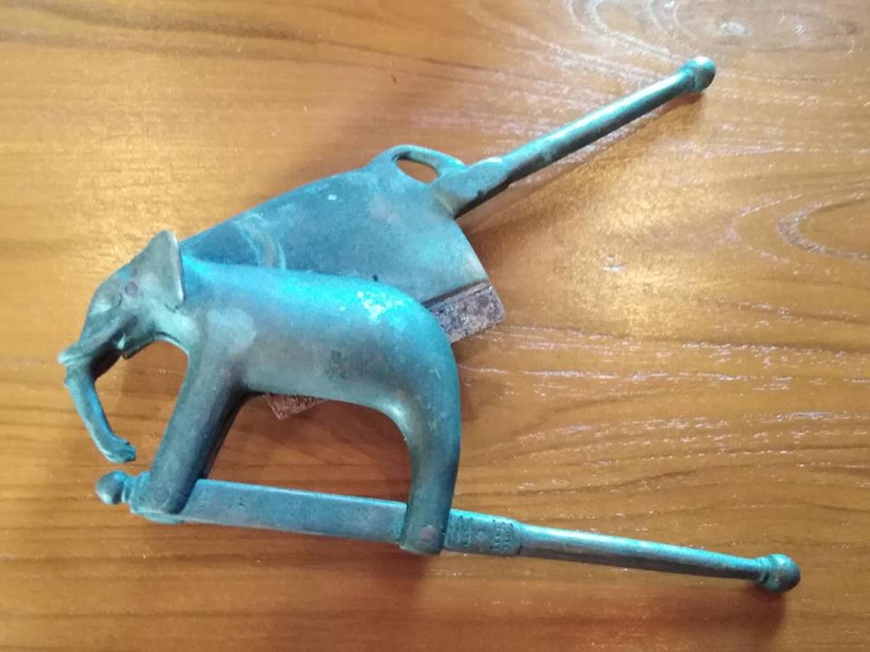 | คำสำคัญ : กรรไกรหนีบหมาก, ของเก่า, กรรไกรคีบหมากรูปช้าง |