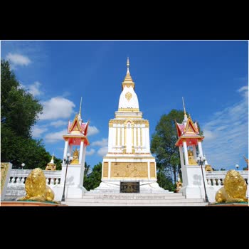 | คำอธิบาย : วัดธาตุสวนตาล อำเภอเขื่องใน จังหวัดอุบลราชธานี ภายในวัดมีสถูปเจดีย์ลักษณะสัณฐานเหมือนกับธาตุพนม มีเรือโบราณหรือเรือเจ้าแม่หงส์ทองที่ขุดพบในลำน้ำชี พระธรรมเทโวเป็นพระพุทธรูปหล่อสำริด ประทับนั่งขัดสมาธิราบปางมารวิชัยศิลปะแบบลาวเป็นพระคู่บ้านคู่เมืององค์หนึ่ง ปีใดที่ฝนฟ้าไม่ตกต้องตามฤดูกาลชาวบ้านจะนิมนต์องค์พระลงไปแห่รอบ ๆ หมู่บ้าน เพื่อให้ฝนตกและให้บ้านเมืองอุดมสมบูรณ์ จนเกิดประเพณีแห่พระธรรมเทโว ขึ้นทุกปี |