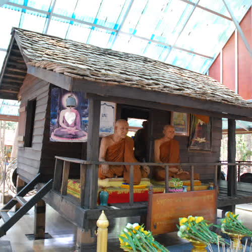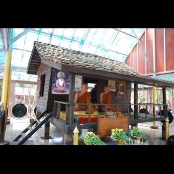 | คำอธิบาย : วัดดอนธาตุ อำเภอพิบูลมังสาหาร จังหวัดอุบลราชธานี ตั้งอยู่บนเกาะกลางแม่น้ำมูล เป็นสถานที่พระครูวิเวกพุทธกิจ (เสาร์ กันตสีโล) และพระอาจารย์ดี ฉันทโร (วัดภูเขาแก้ว) ได้จาริกมาปักกลดกรรมฐานหาที่ดินที่เหมาะสมสำหรับก่อสร้างวัดวิปัสสนากรรมฐาน ปัจจุบันยังคงปรากฏเวชนียสถานและอัฐบริขารของท่าน เช่น กุฎิไม้ที่ท่านเคยจำพรรษา แท่นหินสำหรับนั่งสมาธิภาวนา ทางเดินจงกรม อัฐบริขารและเครื่องใช้ส่วนตัวของท่าน เช่น สังฆาฏิ ผ้าปูนั่ง กาน้ำ จัดแสดงไว้ในเจดีย์ที่สร้างขึ้นเพื่อเป็นอนุสรณ์สถานให้พุทธศาสนิกชนได้กราบไหว้บูชาเป็นที่ยึดหนี่ยวจิตใจ และจารึกไว้ให้ได้ศึกษาจริยวัตรและแนวทางในการปฏิบัติของพระอาจารย์เสาร์ กันตสีโล |