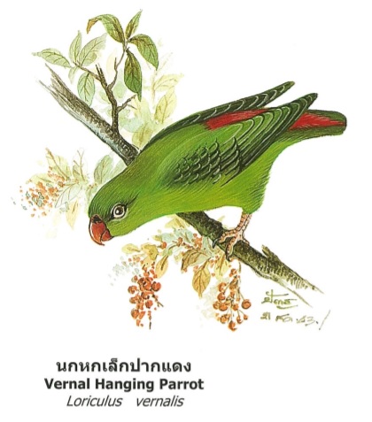 | คำอธิบาย : นกหกเล็กปากแดง หรือ Vernal Hanging Parrot |