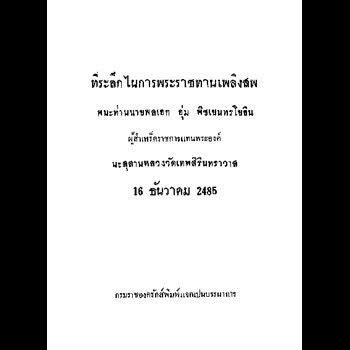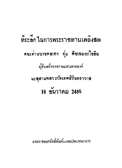 | คำสำคัญ : ผู้สำเร็จราชการ, หนังสือเก่า, นายพลเอก อุ่ม พิชเยนทรโยธิน, หนังสืองานศพ |