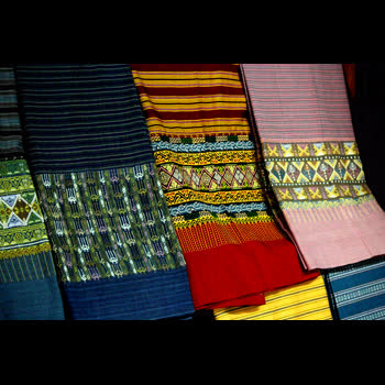 | คำอธิบาย : ในสมัยก่อนผ้าซิ่นตีนจก เป็นผ้าซิ่นที่ทอขึ้นมาไว้ใช้ในโอกาสพิเศษ เกี่ยวกับความเชื่อ ขนบธรรมเนียมประเพณีของชาวพวนหาดเสี้ยว เช่น งานทำบุญ งานนักขัตฤกษ์ งานเทศกาลและพิธีการสำคัญ และในกระบวนการทอผ้าทั้งหมด ทุกประเภท ผ้าซิ่นตีนจก เป็นสิ่งที่ประณีตสวยงามที่สุดและยังแฝงไว้ด้วยความเชื่อและขนบธรรมเนียมประเพณีอันดี |