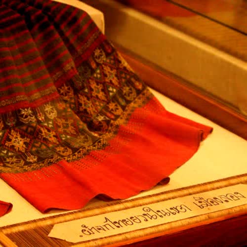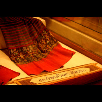 | คำอธิบาย : ในสมัยก่อนผ้าซิ่นตีนจก เป็นผ้าซิ่นที่ทอขึ้นมาไว้ใช้ในโอกาสพิเศษ เกี่ยวกับความเชื่อ ขนบธรรมเนียมประเพณีของชาวพวนหาดเสี้ยว เช่น งานทำบุญ งานนักขัตฤกษ์ งานเทศกาลและพิธีการสำคัญ และในกระบวนการทอผ้าทั้งหมด ทุกประเภท ผ้าซิ่นตีนจก เป็นสิ่งที่ประณีตสวยงามที่สุดและยังแฝงไว้ด้วยความเชื่อและขนบธรรมเนียมประเพณีอันดี |