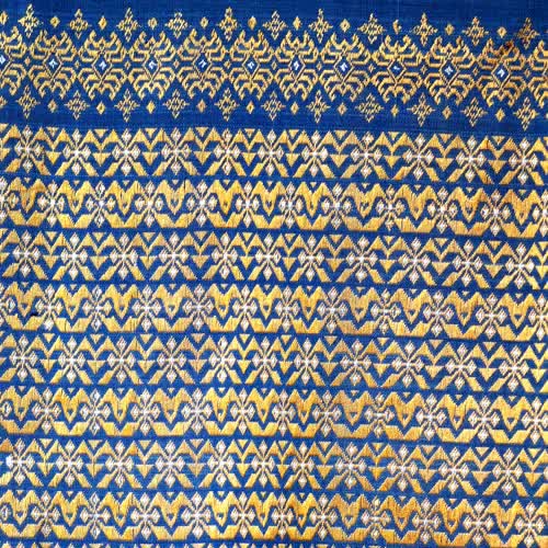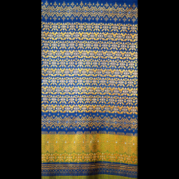 | คำอธิบาย : ผ้าทอตีนจกเมืองลอง จังหวัดแพร่ ลวดลายของศิลปินแห่งชาติ ประนอม ทาแปง ซิ่นจกเต็มตัวฝ้ายปั่นมือ ย้อมสีธรรมชาติ ลายสร้อยกาบหมาก สีเหลือง ย้อมจากใบขนุน |