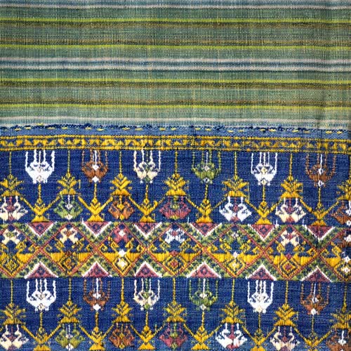 ผ้าทอตีนจก เมืองลอง จังหวัดแพร่ ซิ่นต๋าต่อจกโบราณฝ้ายปั่นมือย้อมคราม ลายขันดอก ได้รับใบอนุญาตภายใต้ ให้เผยแพร่-โดยต้องระบุที่มาแต่ห้ามดัดแปลงและห้ามใช้เพื่อการค้า 3.0 Thailand.