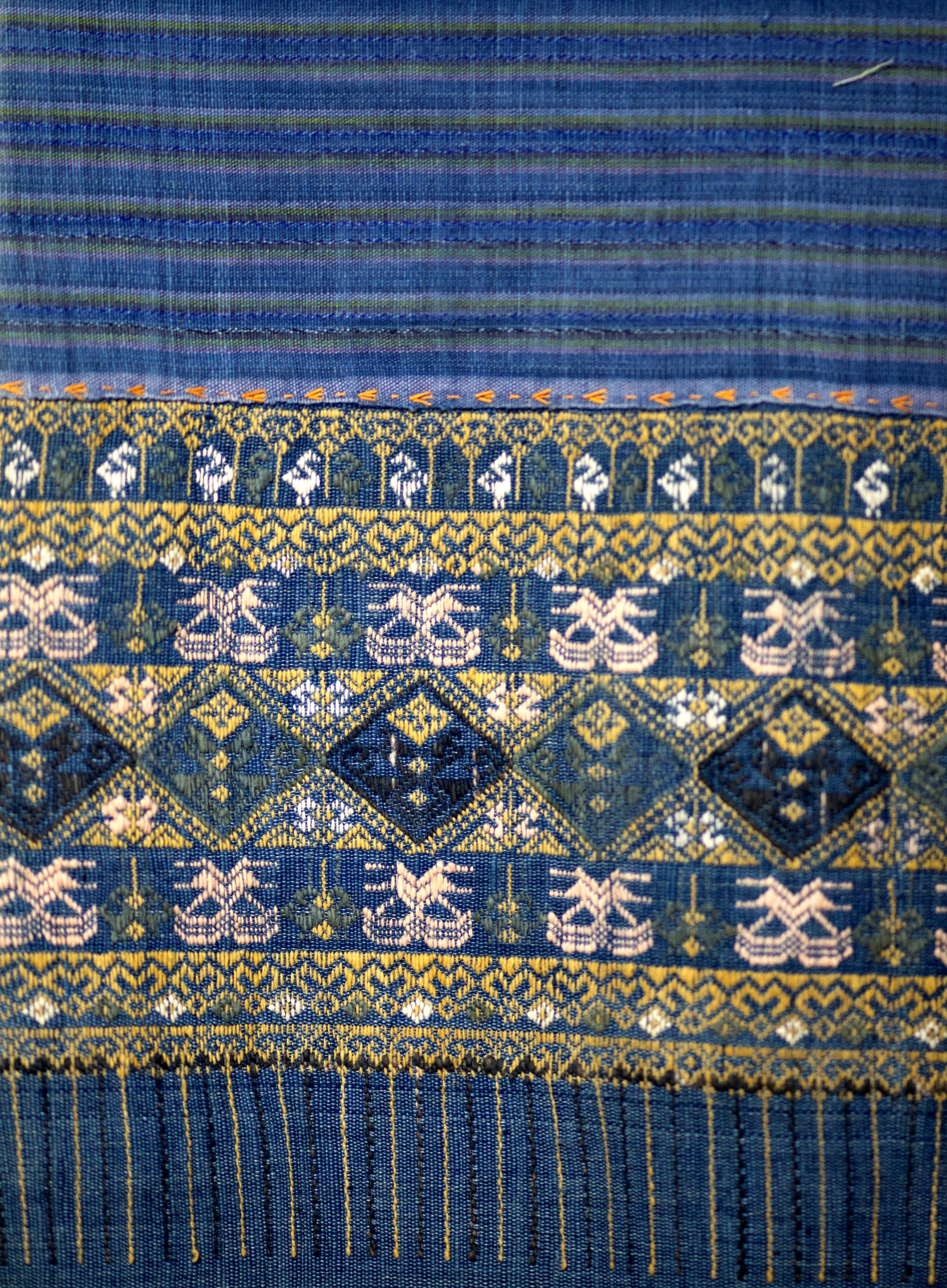รีวิว : ผ้าทอตีนจก เมืองลอง จังหวัดแพร่ ซิ่นต๋าต่อจกโบราณฝ้ายปั่นมือย้อมคราม ลายหงส์คู่ , ขากำปุ้ง