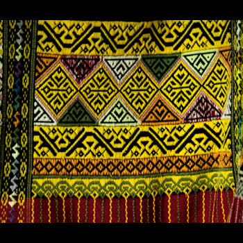 | คำอธิบาย : ผ้าทอตีนจกเมืองลอง จังหวัดแพร่ ลายซิ่นตีนจกเมืองลอง โบราณ ลายหัวใจ งูห้อยส้าว |