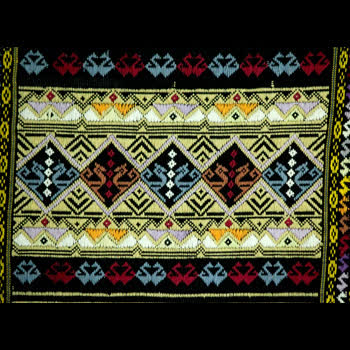 | คำอธิบาย : ผ้าทอตีนจกเมืองลอง จังหวัดแพร่ ลายซิ่นตีนจกเมืองลอง โบราณ ลายหงส์คู่ กาบหมาก |