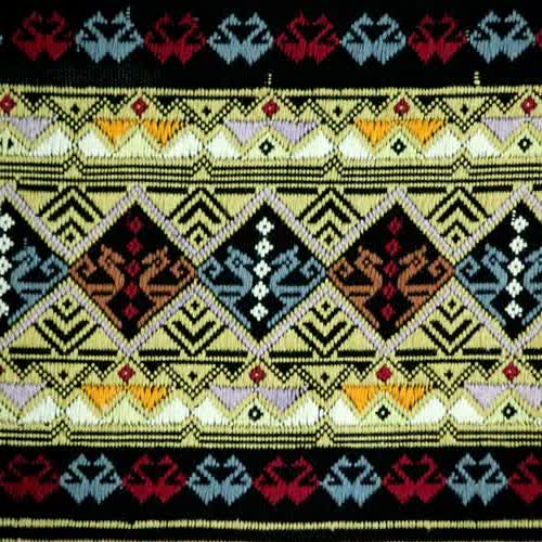 | ชื่อเรื่อง : ลายซิ่นตีนจกเมืองลอง โบราณ ลายหงส์คู่ กาบหมาก |