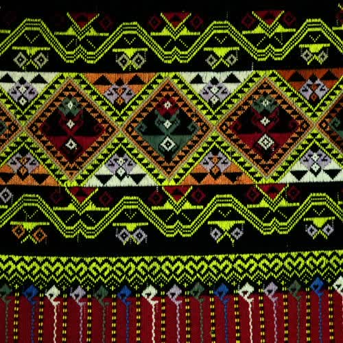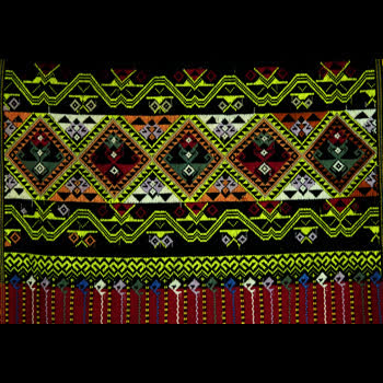 | คำอธิบาย : ผ้าทอตีนจกเมืองลอง จังหวัดแพร่ ลายซิ่นตีนจกเมืองลอง โบราณ ลายฟันเลื่อยงูห้อยส้าว |