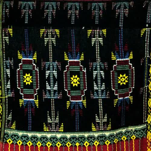| คำอธิบาย : ผ้าทอตีนจกเมืองลอง จังหวัดแพร่ ลายซิ่นตีนจกเมืองลอง โบราณ ลายโคมช่อน้อยตุงชัย |