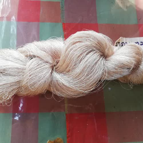 | คำอธิบาย : เส้นไหมที่ย้อมด้วยสีธรรมชาติที่ได้จากรากมะตูม |