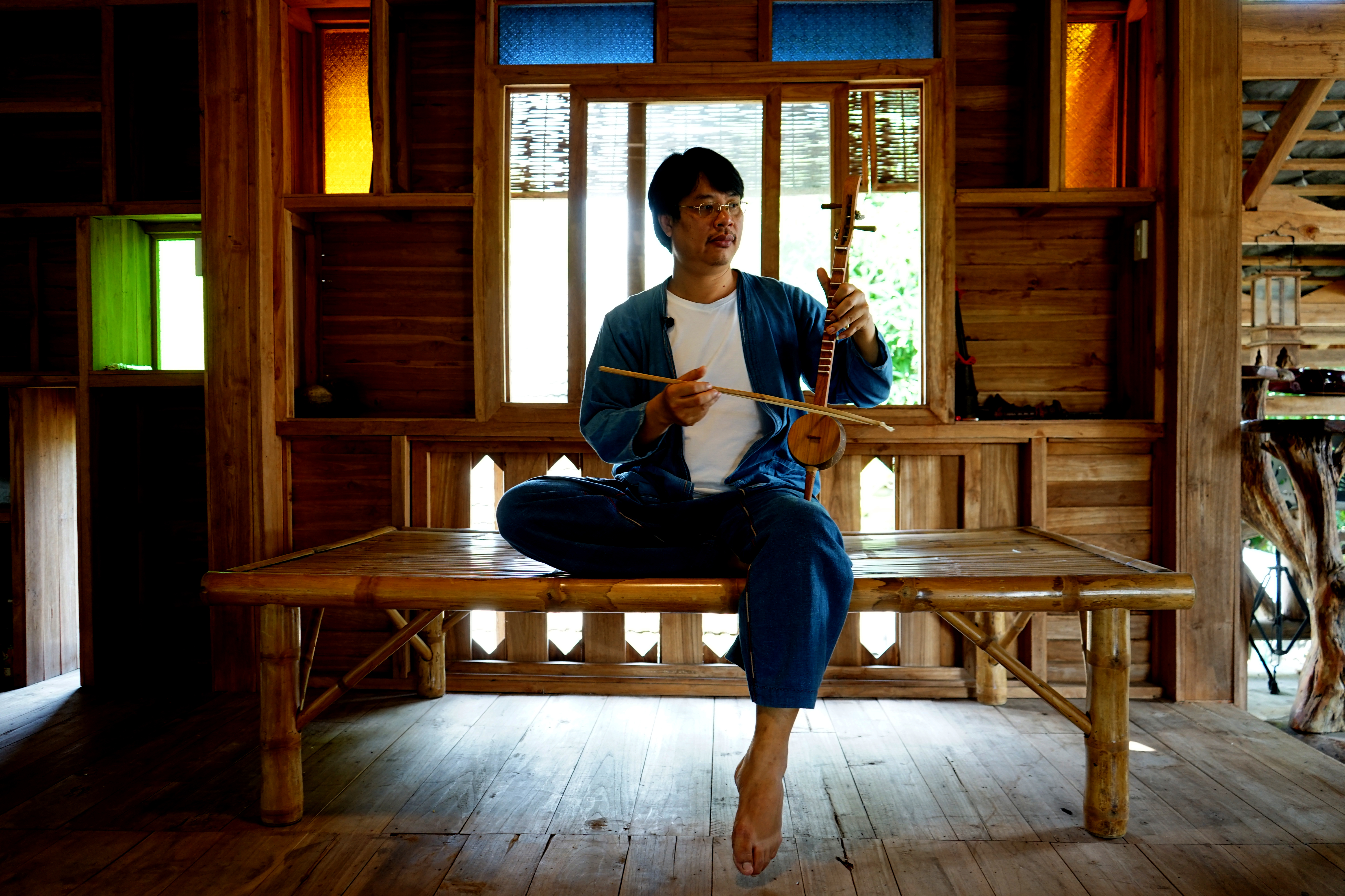 | คำอธิบาย : นายจีรศักดิ์ ธนูมาศ ผู้ก่อตั้งโฮงซึงหลวง อ.ลอง จ.แพร่ |