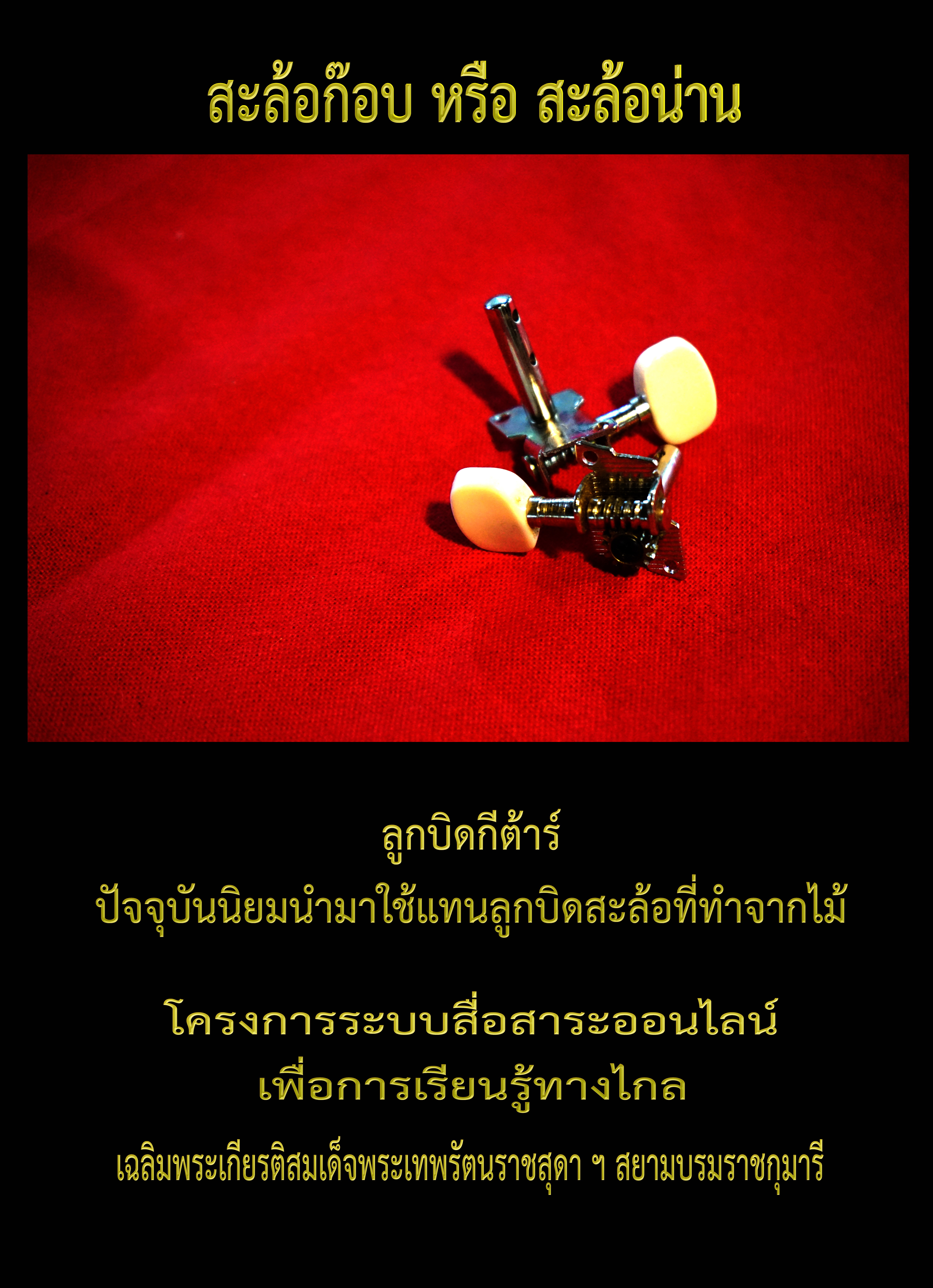 ส่วนประกอบสะล้อน่าน หลักบิดกีตาร์ ได้รับใบอนุญาตภายใต้ ให้เผยแพร่-โดยต้องระบุที่มาแต่ห้ามดัดแปลงและห้ามใช้เพื่อการค้า 3.0 Thailand.