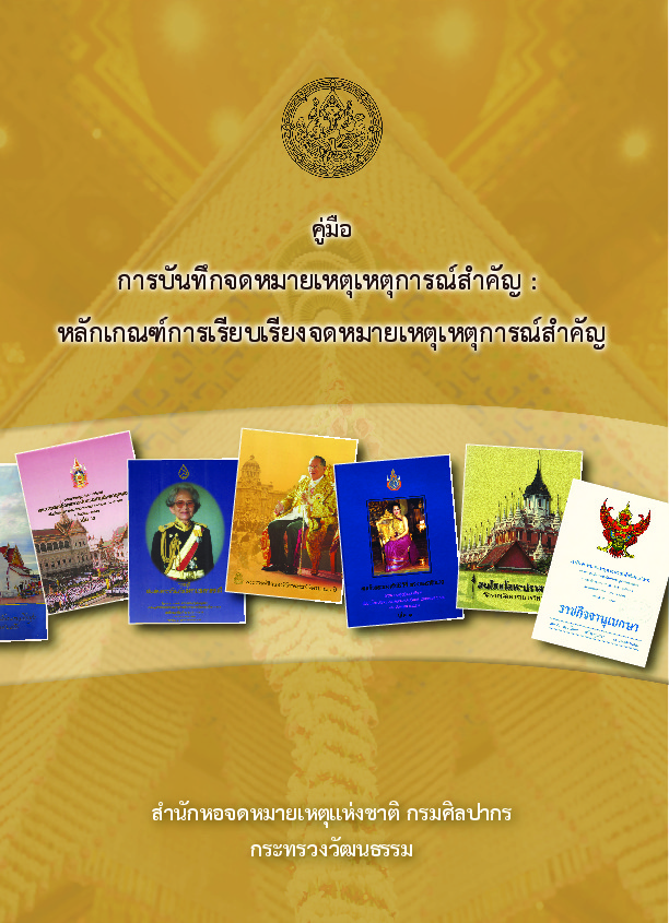 "คู่มือการบันทึกจดหมายเหตุเหตุการณ์สำคัญ : หลักเกณฑ์การเรียบเรียงจดหมายเหตุเหตุการณ์สำคัญ".