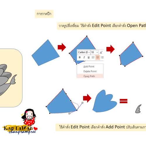 การวาดนกด้วย Microsoft PowerPoint ได้รับใบอนุญาตภายใต้ ให้เผยแพร่-ดัดแปลง-โดยต้องระบุที่มา 3.0 Thailand.