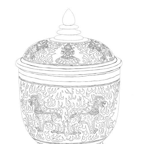 | คำอธิบาย : ภาพวาดภาชนะเครื่องถ้วยเบญจรงค์ สำหรับการระบายสี |