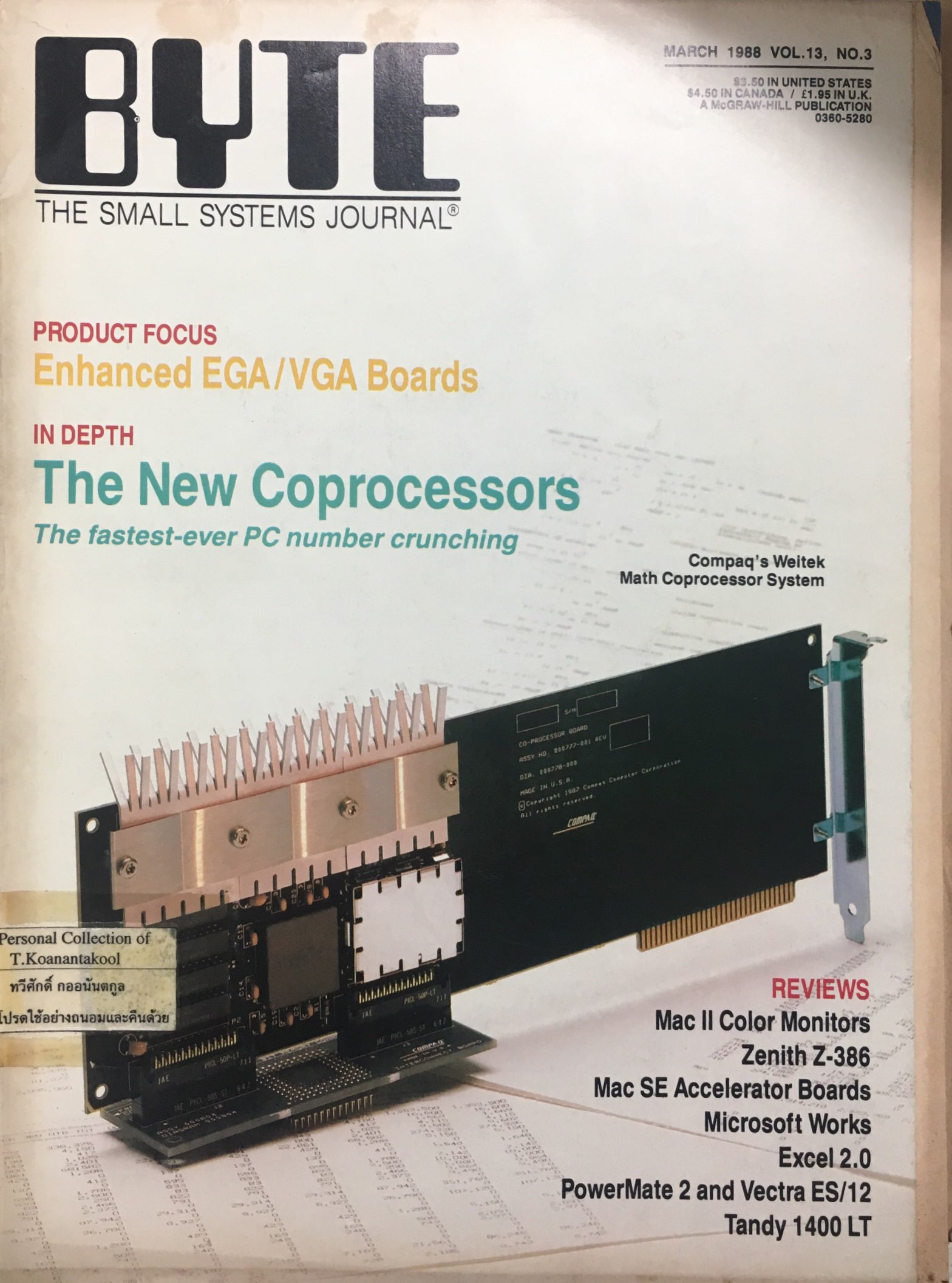 (2562). "รูปภาพหน้าปก Byte March 1988 VOL.13 NO.3".