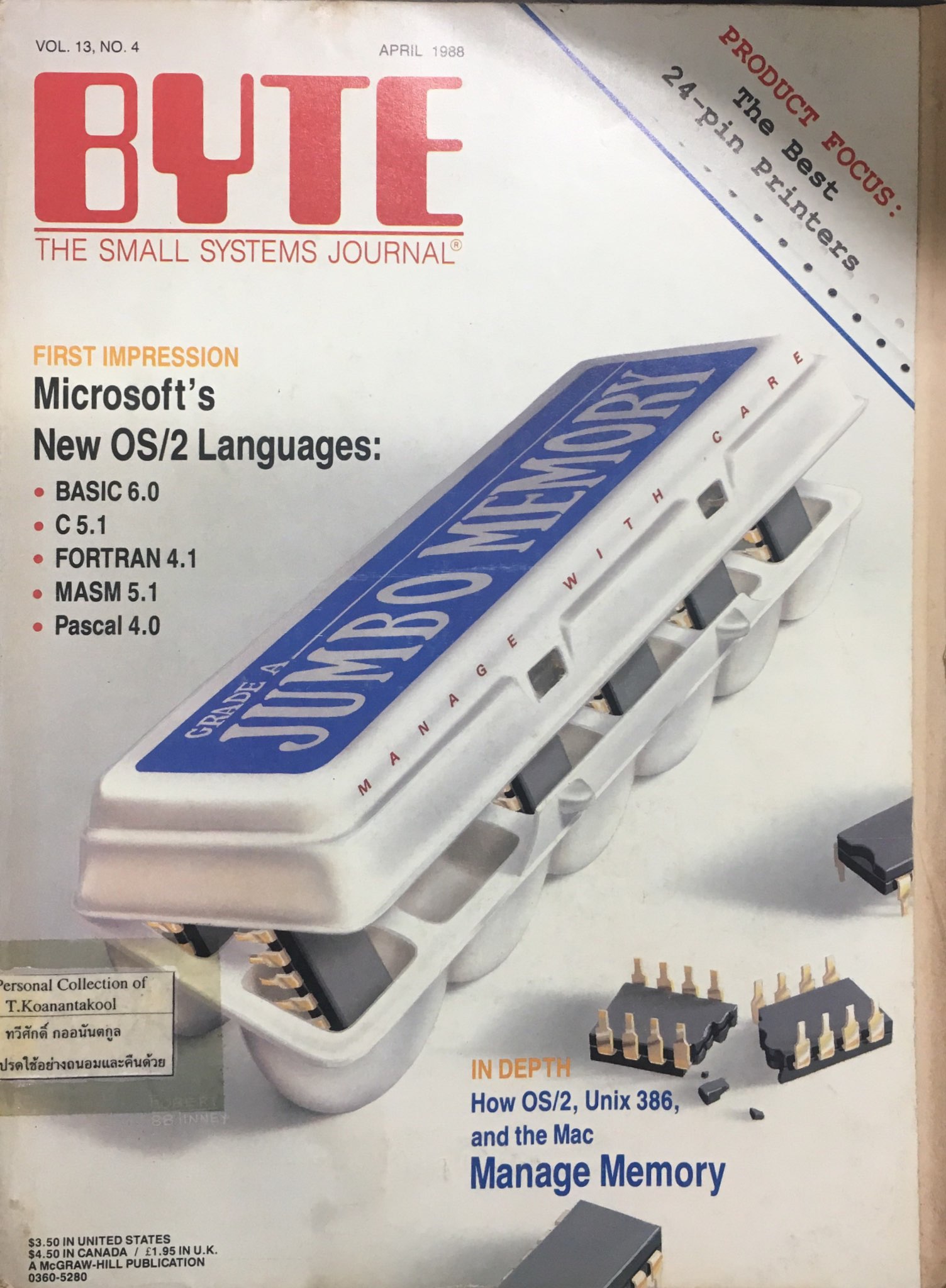 (2562). "รูปภาพหน้าปก Byte April 1988 VOL.13 NO.4".