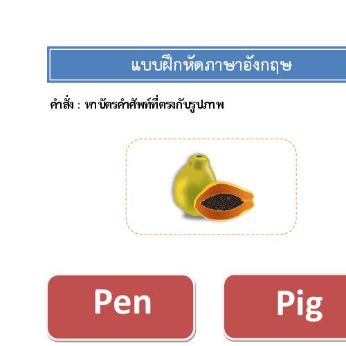 | คำอธิบาย : แบบฝึกหัดภาษาอังกฤษ เพื่อส่งเสริมการเรียนรู้ของเด็ก และส่งเสริมพัฒนาการทักษะภาษาอังกฤษ พัฒนาการทางด้านความคิด การสังเกตุ การใช้ภาษาในการสื่อสารสื่อความหมาย การจดจำชื่อเรียกสิ่งต่างๆ รอบตัว ฝึกการสังเกตสิ่งที่เหมือนกัน สิ่งที่แตกต่างกัน |