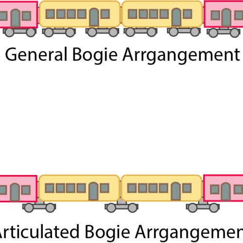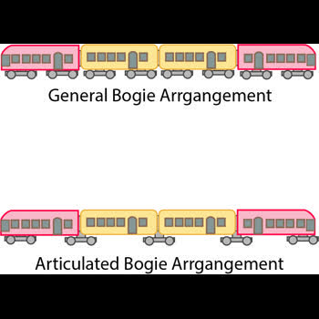 | คำอธิบาย : แคร่แบบปกติ(General Bogie)มักจะประกอบขึ้นจากสองเพลา แต่ละตัวรถจะใช้สองโบกี้ติดตั้ง ณ ตำแหน่งหัวและท้ายของรถ , แคร่แบบอาร์ทิคูเลทเทด (Articulated Bogie) มีตำแหน่งอยู่ระหว่างตัวรถ ข้อดีคือลดจานวนโบกี้ในขบวนรถไฟ ลดเสียงดังรบกวนที่เกิดจากล้อและราง ส่วนข้อเสียคือเพลาล้อต้องรับน้ำหนักมากขึ้น และยากต่อการแยกตัวรถออกจากกันเพื่อจัดขบวนหรือซ่อมบำรุง |