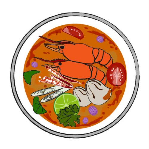| คำอธิบาย : ภาพวาดรูปต้มยำกุ้ง เป็นอาหารไทยอันดับต้นๆ ที่ชาวต่างชาติมักนึกถึงอาหารไทย ต้มยำกุ้งเป็นอาหารประยุกต์ที่มีกำเนิดในภาคกลางเมื่อราวปี พ.ศ. 2500 และนิยมไปทั่วประเทศจนกลายเป็นหนึ่งในเมนูอาหารประจำชาติไทย |
