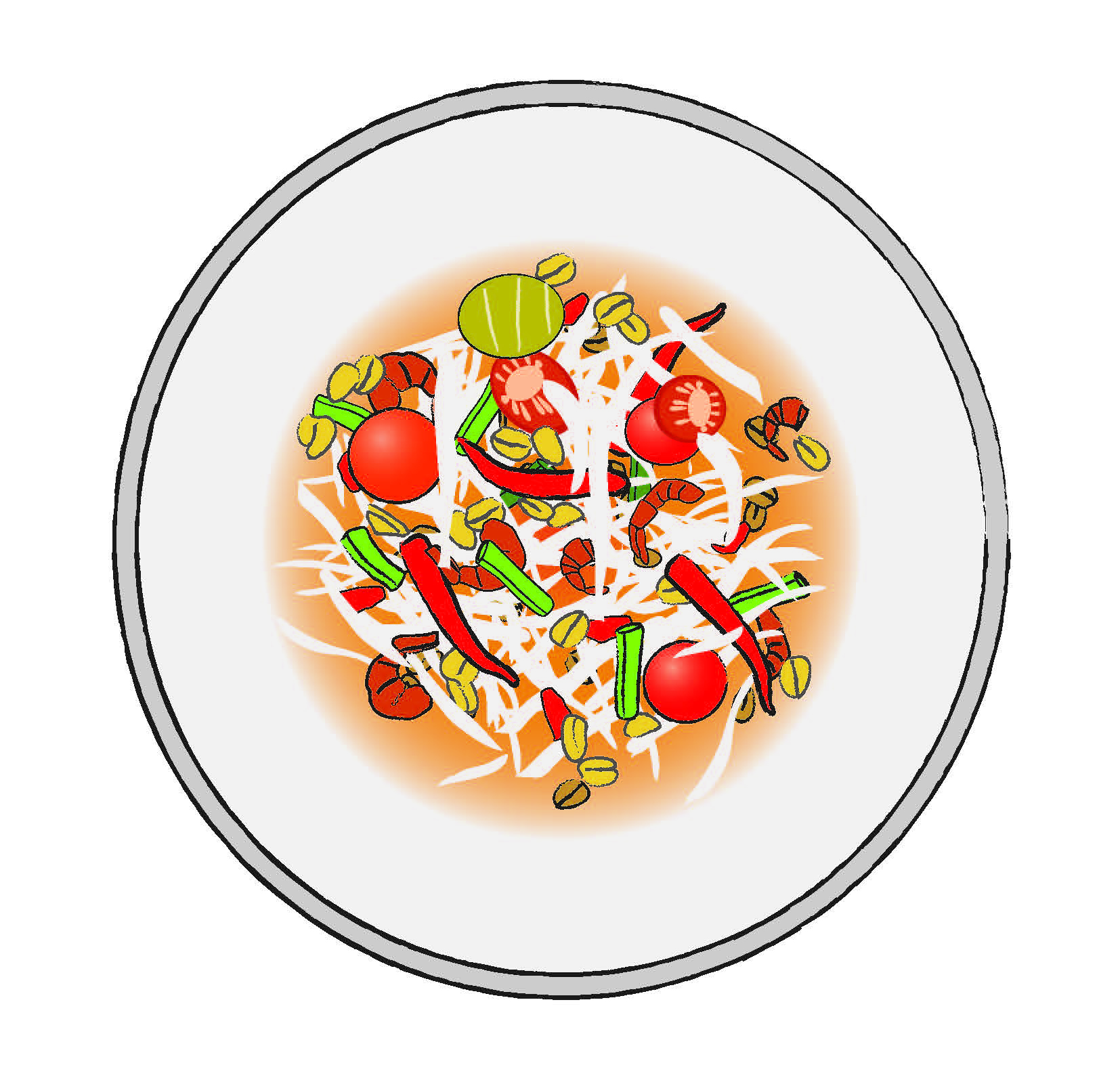 Clip art: ภาพวาดรูปส้มตำ ได้รับใบอนุญาตภายใต้ ให้เผยแพร่-ดัดแปลง-โดยต้องระบุที่มาแต่ห้ามใช้เพื่อการค้าและต้องเผยแพร่งานดัดแปลงโดยใช้สัญญาอนุญาตชนิดเดียวกัน 3.0 Thailand.