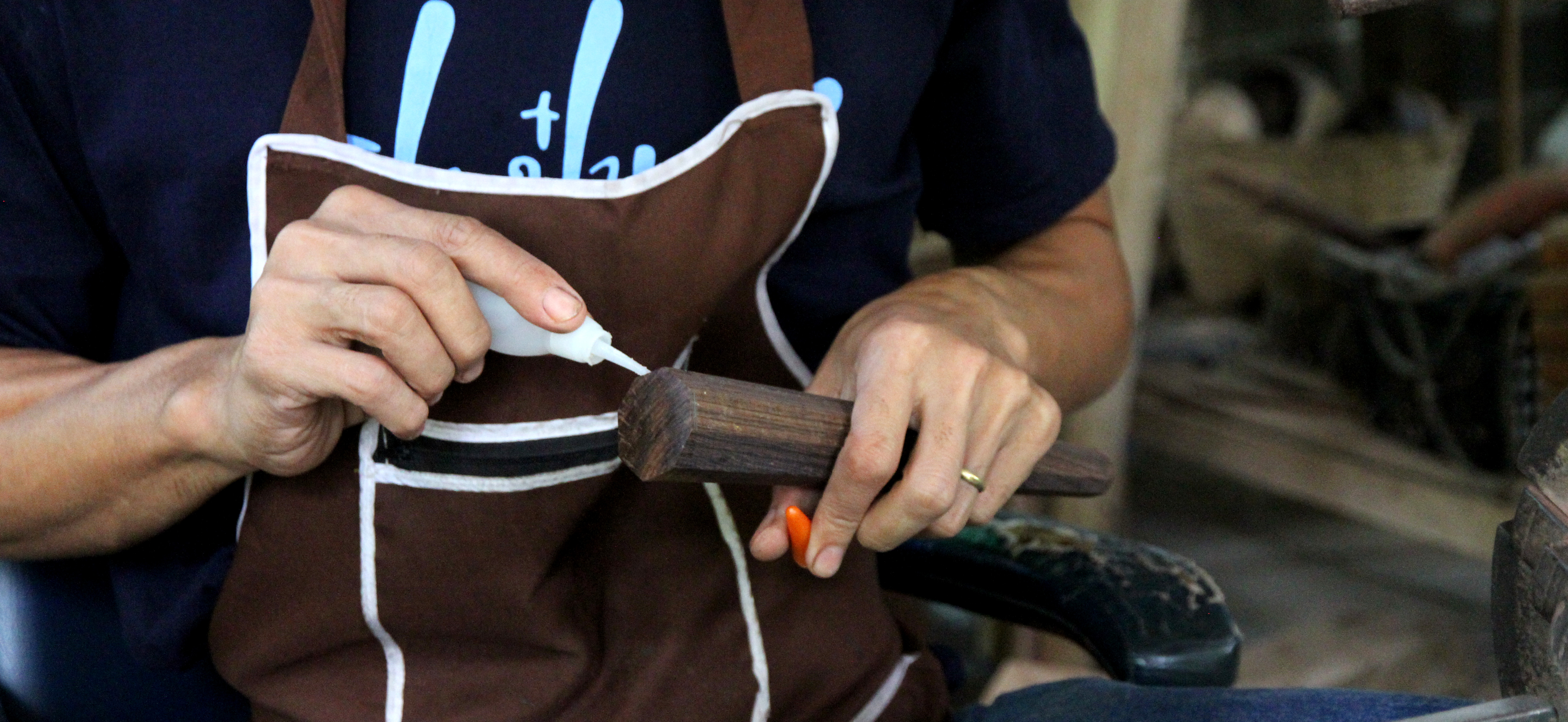 "พิณเปี๊ยะ ขั้นตอนการผลิต กลึงลูกบิด".