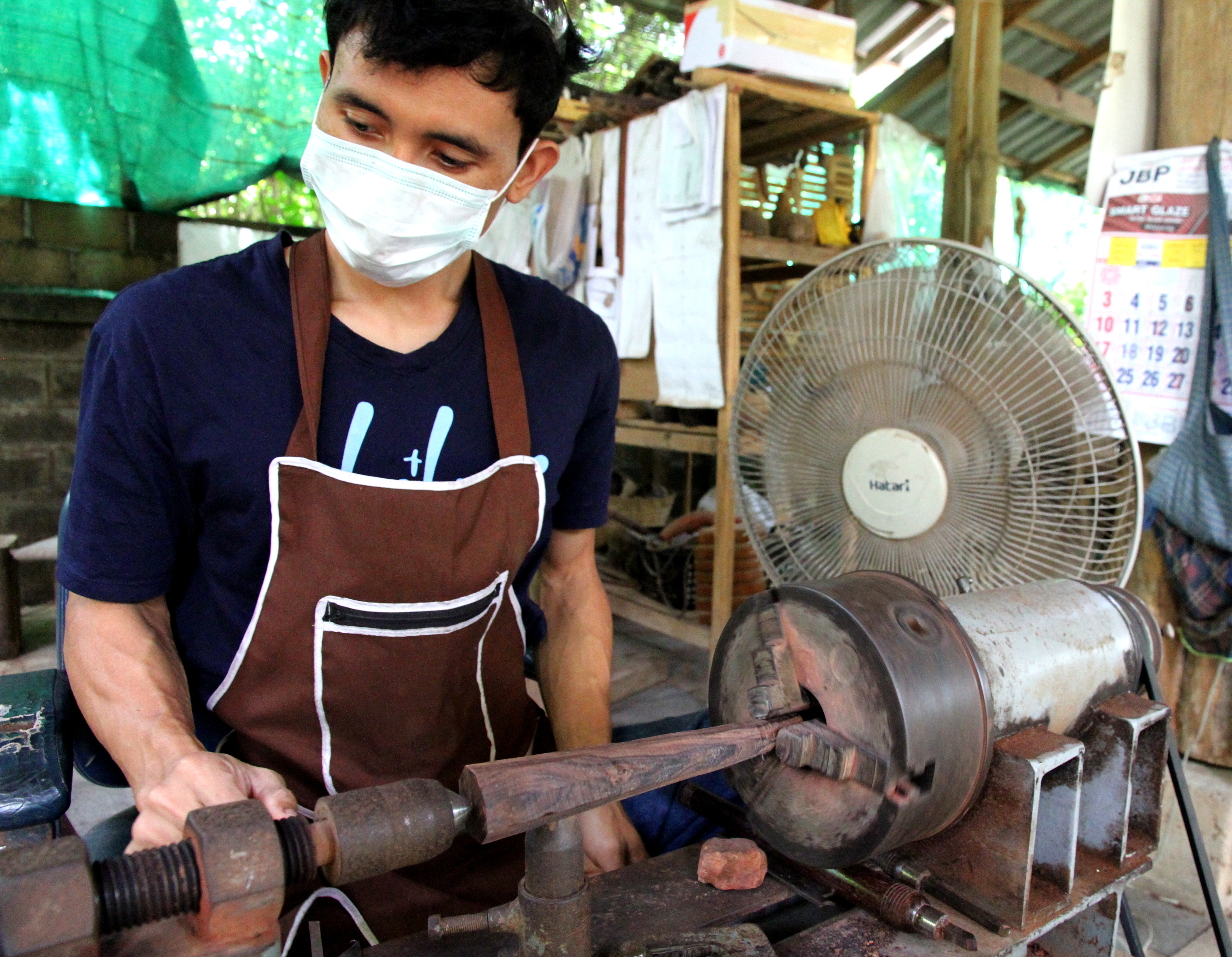 "พิณเปี๊ยะ ขั้นตอนการผลิต กลึงลูกบิด".