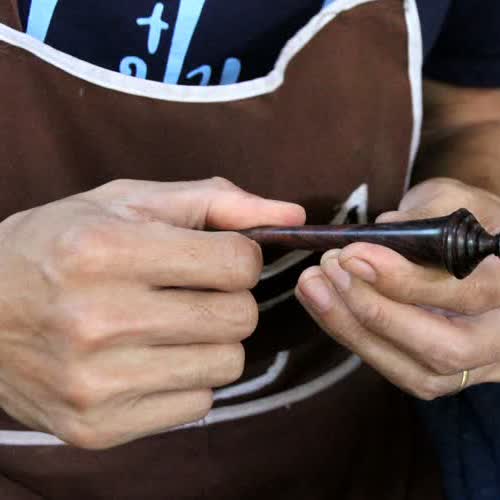 พิณเปี๊ยะ ขั้นตอนการผลิต กลึงลูกบิด ได้รับใบอนุญาตภายใต้ ให้เผยแพร่-โดยต้องระบุที่มาแต่ห้ามดัดแปลงและห้ามใช้เพื่อการค้า 3.0 Thailand.