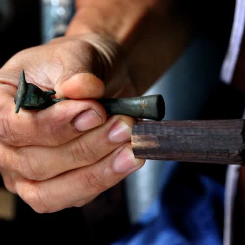 | ชื่อเรื่อง : พิณเปี๊ยะ ขั้นตอนการผลิต การใส่หัวพิณ |