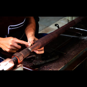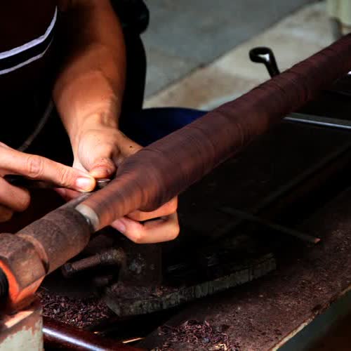 พิณเปี๊ยะ ขั้นตอนการผลิต การกลึงคันพิณ ได้รับใบอนุญาตภายใต้ ให้เผยแพร่-โดยต้องระบุที่มาแต่ห้ามดัดแปลงและห้ามใช้เพื่อการค้า 3.0 Thailand.