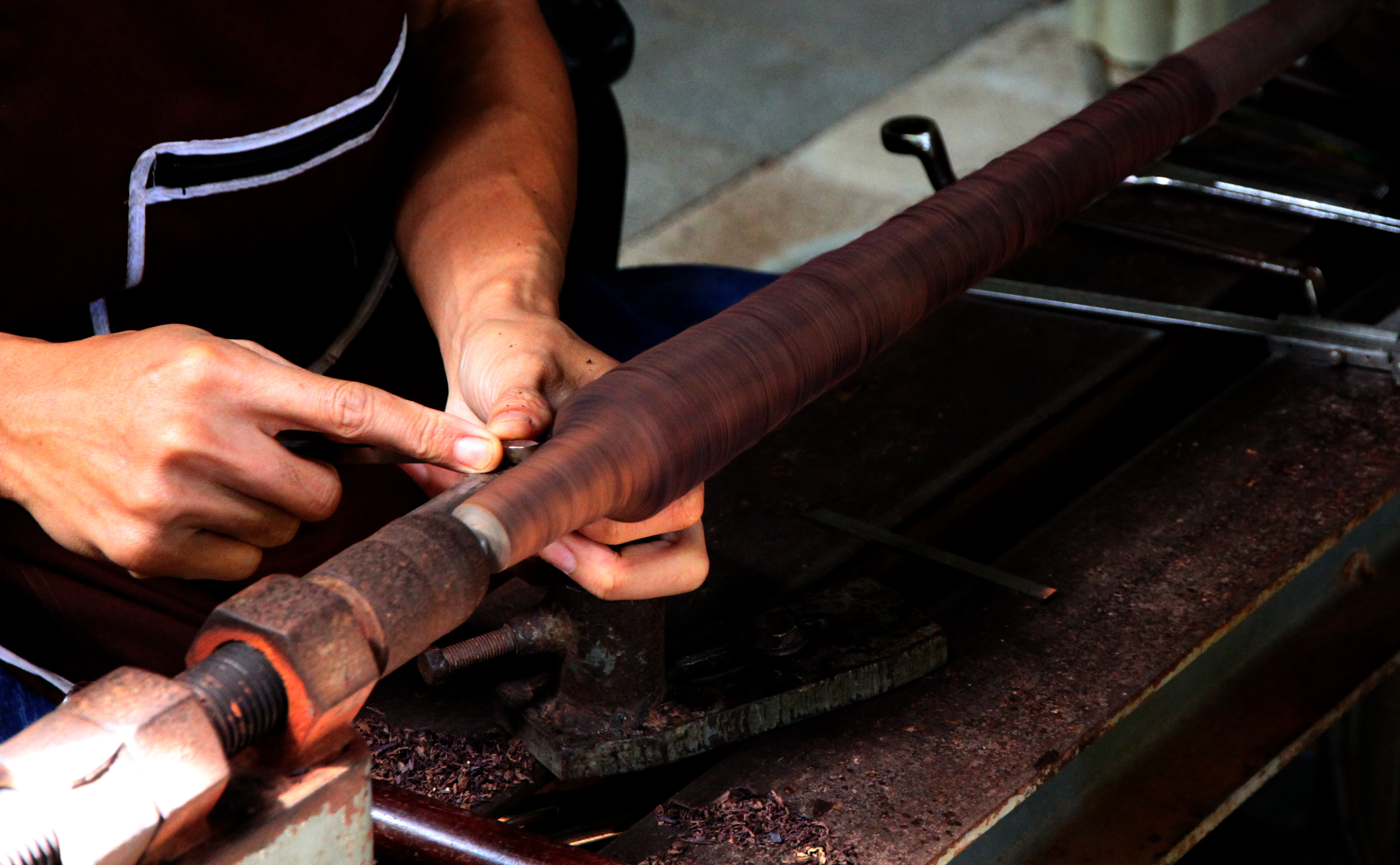 "พิณเปี๊ยะ ขั้นตอนการผลิต การกลึงคันพิณ".