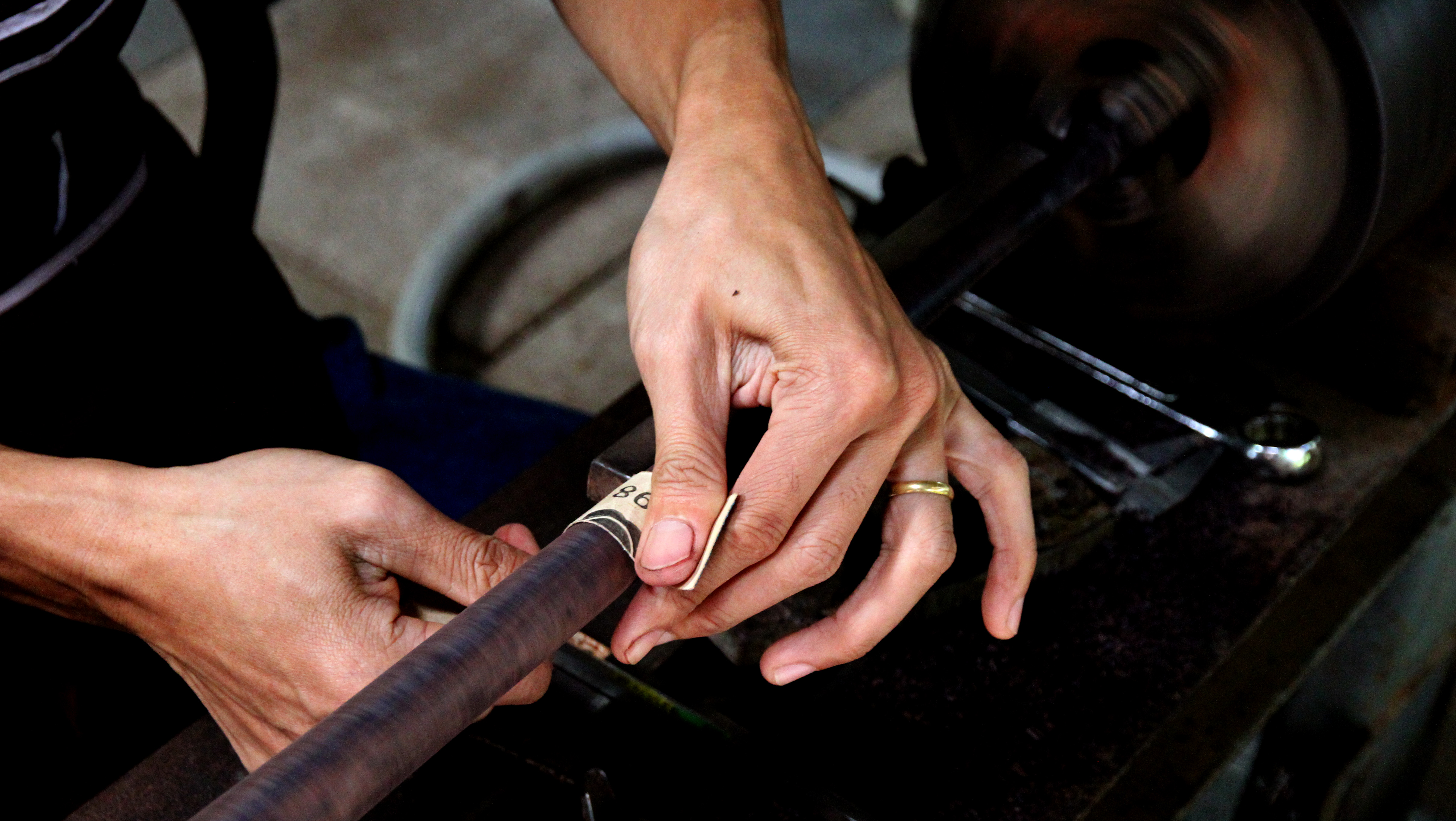 พิณเปี๊ยะ ขั้นตอนการผลิต การกลึงคันพิณ ได้รับใบอนุญาตภายใต้ ให้เผยแพร่-โดยต้องระบุที่มาแต่ห้ามดัดแปลงและห้ามใช้เพื่อการค้า 3.0 Thailand.