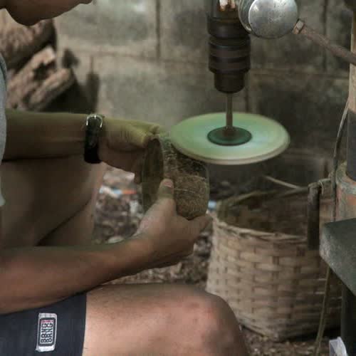 รีวิว : พิณเปี๊ยะ ขั้นตอนการผลิต ขัดเงากะลา