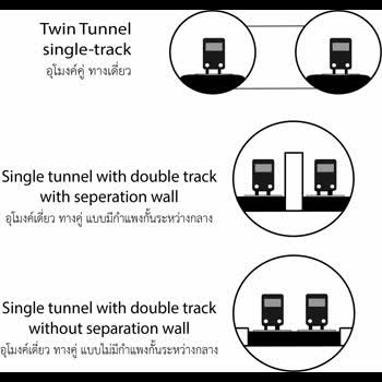 | คำอธิบาย : ประกอบด้วย Twin Tunnel single-track(อุโมงค์คู่ทางเดี่ยว) , Single tunnel with dcuble track with separation wall (อุโมงค์ทางคู่แบบมีกำแพงกั้นระหว่างกลาง) , Single tunnel with dcuble track without separation wall (อุโมงค์เดี่ยวทางคู่ แบบไม่มีกำแพงกั้นระหว่างกลาง) |