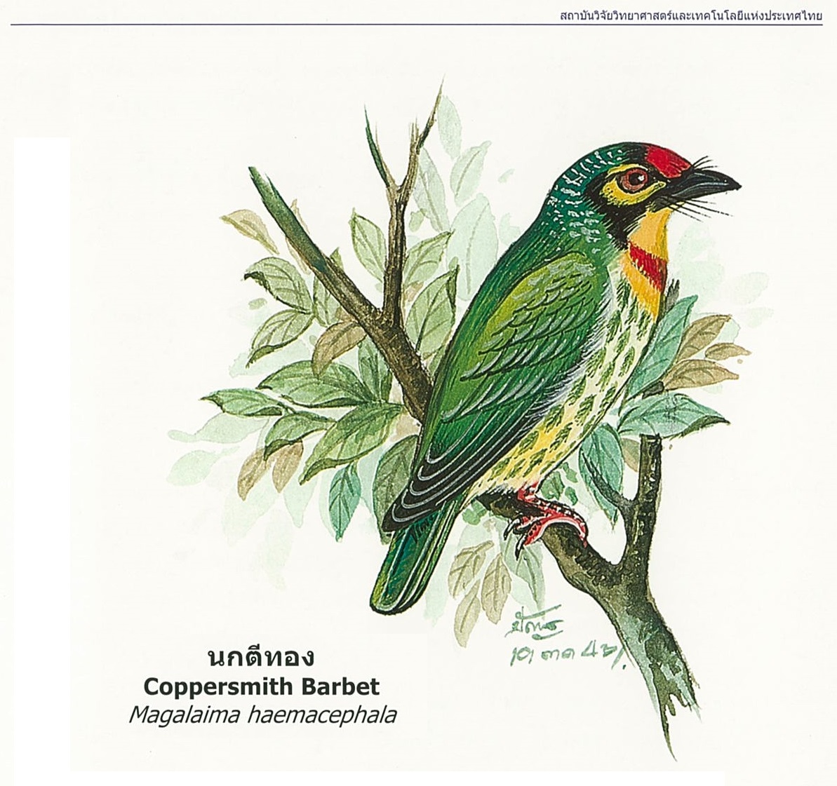 (2562). "นกตีทอง, Coppersmith Barbet".