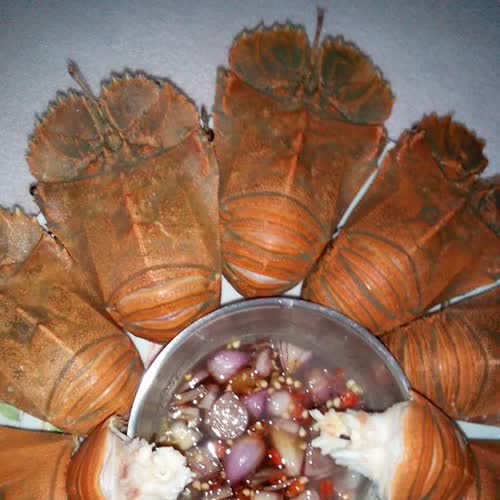 | คำอธิบาย : กั้งตั๊กแตน(กั้งกุ้ง) และกั้งกระดาน(กั้งเหล็กขูด) \" กั้ง \" เป็นสัตว์น้ำที่ไม่มีกระดูกสันหลัง คล้ายกุ้ง มีหลายชนิด ลำตัวแบนหรือกลม เปลือกที่หุ้มท่อนหัวและอกลงมาถึงอกปล้องที่ 5 แต่ไม่ถึงปล้องที่ 8 และไม่มีครีบเหมือนกุ้ง เปลือกจะหนาแกะค่อนข้างยาก เนื้อจะแน่นและหวานกว่ากุ้งมาก |