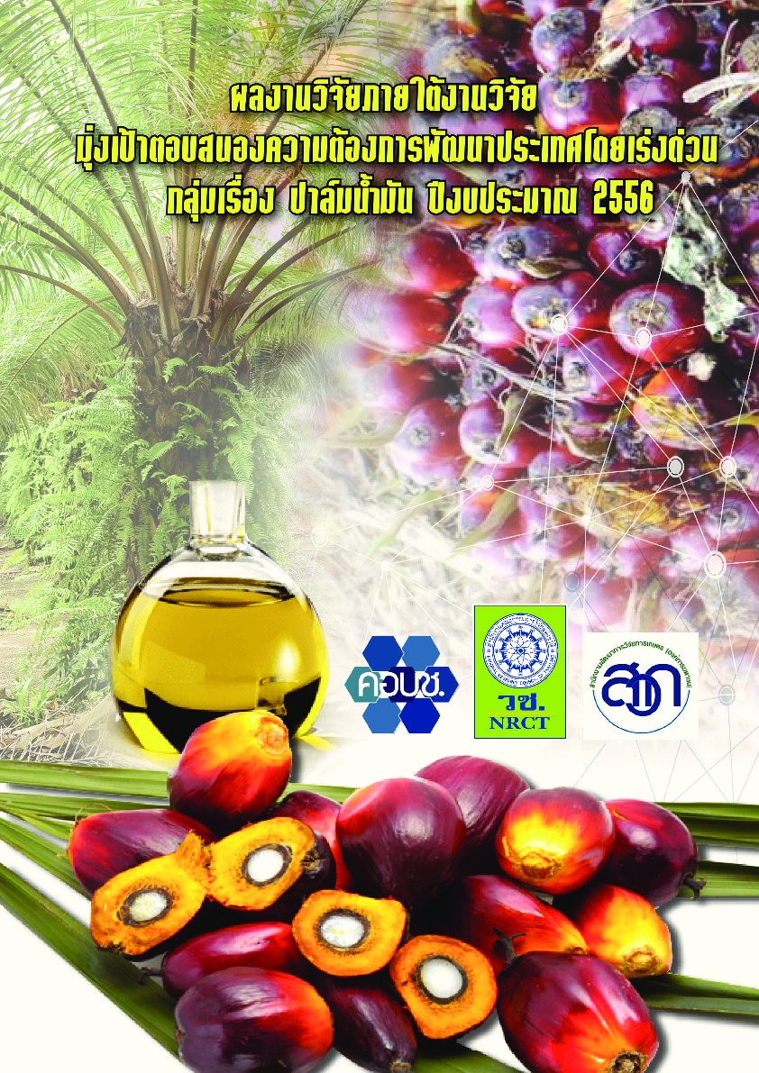 "ผลงานวิจัยภายใต้งานวิจัยมุ่งเป้าตอบสนองความต้องการพัฒนาประเทศโดยเร่งด่วน กลุ่มเรื่อง ปาล์มน้ำมัน ปีงบประมาณ 2556".
