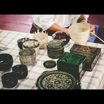 | คำอธิบาย : การสาธิตทำเครื่องเขิน ในงาน "กาดสืบสานครัวฮัก" และ "กาดสืบสานงานทำมือ" วันที่ 3-4 พฤศจิกายน 2561 |