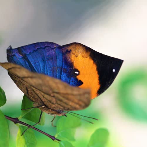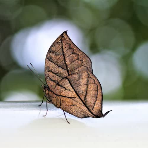 | คำอธิบาย : ผีเสื้อใบไม้ใหญ่อินเดีย มีชื่อวิทยาศาสตร์ Kallima inachus เป็นผีเสื้อที่พบได้ในทวีปเอเชีย มีลักษณะเด่นคือปีกคล้ายใบไม้แห้ง จึงสามารถอำพรางตัวในธรรมชาติได้เป็นอย่างดีตัวโตเต็มที่มีความยาวประมาณ 8.5-11 เซนติเมตร ปีกส่วนบนจะเป็นสีน้ำเงิน ปลายปีกมีสีดำพาดด้วยสีส้มเหลืองระหว่างกลางสีสันสวยงาม ส่วนปีกล่างมีสีน้ำตาลลักษณะจะเหมือนใบไม้แห้ง สถานที่ถ่ายทำ อุทยานผีเสื้อและแมลงกรุงเทพฯ (Bangkok Butterfly Garden and Insectarium) |