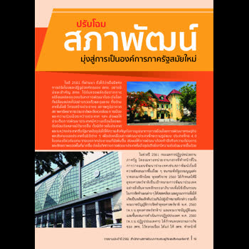 | ชื่อเรื่อง : ปรับโฉม สภาพัฒน์ มุ่งสู่การเป็นองค์การภาครัฐสมัยใหม่ |