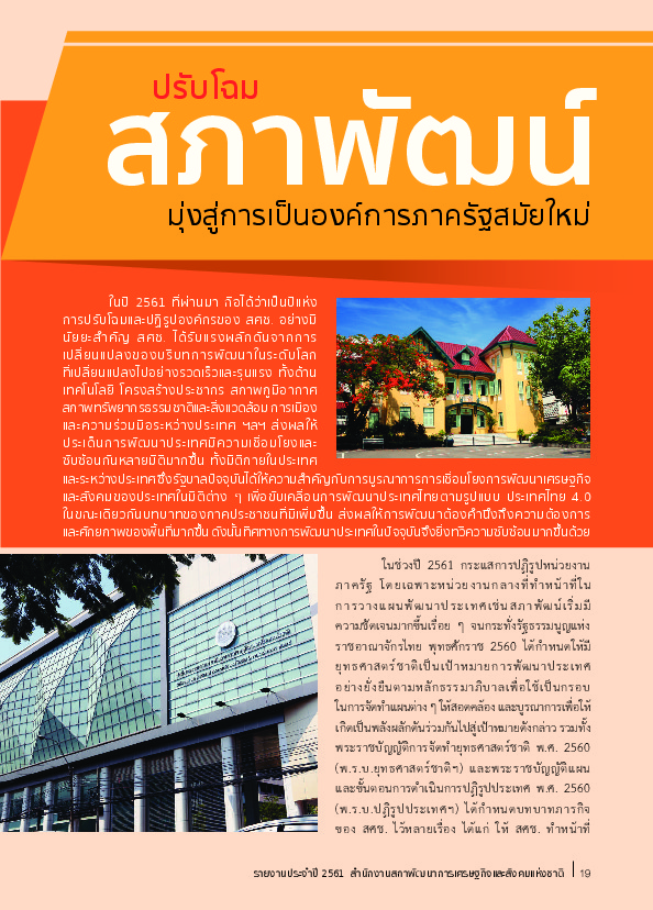(2562). ปรับโฉม สภาพัฒน์ มุ่งสู่การเป็นองค์การภาครัฐสมัยใหม่,