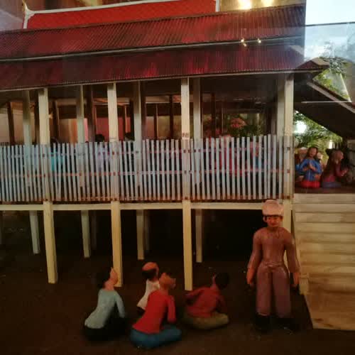 | คำอธิบาย : ตุ๊กตาชาววังจำลองเหตุการณ์วันเสด็จพระราชดำเนินของในหลวง ร.9 เมื่อปี พ.ศ. 2519 |
