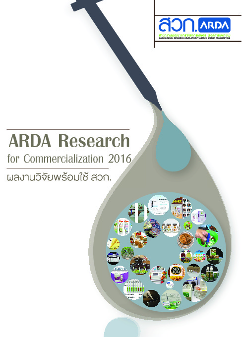 | คำอธิบาย : หนังสือผลงานวิจัยพร้อมใช้ สวก. ปี 2559 หรือ ARDA Research for Commercialization 2016 ที่จัดทำขึ้นนี้เป็นการรวมผลงานที่เป็นผลผลิตเด่นของ สวก. ซึ่งผลงานจำนวนหนึ่ง ได้มีการถ่ายทอดเทคโนโลยีให้ภาครัฐ ภาคเอกชนนำไปใช้ประโยชน์ทั้งในรูปแบบของการอนุญาตให้ใช้สิทธิแบบรายเดียว (Exclusive Licensing) และการอนุญาตให้ใช้สิทธิแบบไม่เด็ดขาด (Non-Exclusive Licensing) สวก. มีเป้าหมายสนับสนุนทุนวิจัยเพื่อผลิตผลงานวิจัยที่สามารถนำไปใช้ประโยชน์ได้อย่างแท้จริง พร้อมทั้งผลักดันให้มีการนำไปใช้ประโยขน์ทั้งเชิงนโยบาย เชิงสาธารณะ และเชิงพาณิชย์ เพื่อลดต้นทุนการผลิต เพิ่มประสิทธิภาพการผลิต เพิ่มโอกาสการแข่งขัน และสร้างนวัตกรรมด้านการเกษตรและอุตสาหกรรมการเกษตร โดยมุ่งหวังที่จะเป็นหน่วยงานหลักหน่วยงานหนึ่งที่ผลักดันให้ประเทศไทยเป็นประเทศที่ขับเคลื่อนเศรษฐกิจด้วยนวัตกรรม (Innovation-driven economy) เพื่อยกระดับขีดความสามารถในการแข่งขันสู่ระดับสากล และหลุดพ้นจากการเป็นประเทศที่ติดกับดักประเทศรายได้ปานกลาง (middle-income trapped country) |