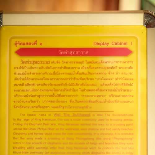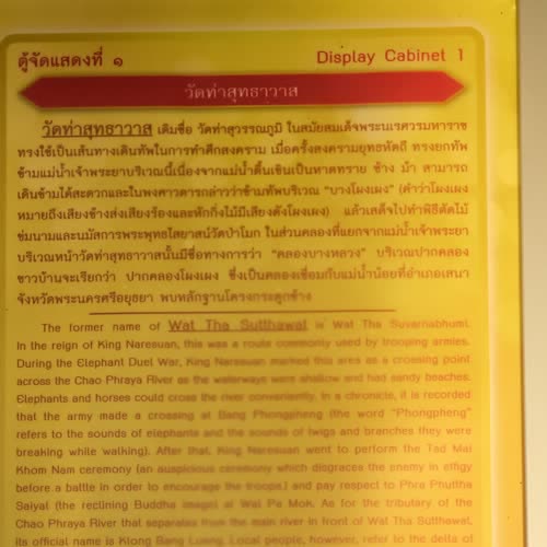 | คำอธิบาย : ป้ายบอกประวัติวัดท่าสุทธาวาสในพิพิธภัณฑ์ศูนย์ตุ๊กตาชาววังบ้านบางเสด็จ |