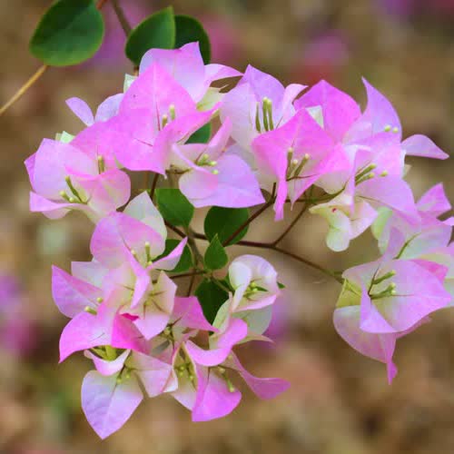 คำสำคัญ : ไม้ยืนต้นประเภทพุ่มกึ่งเลื้อย, ดอกไม้, เฟื่องฟ้า, ดอกสีชมพูขาว |